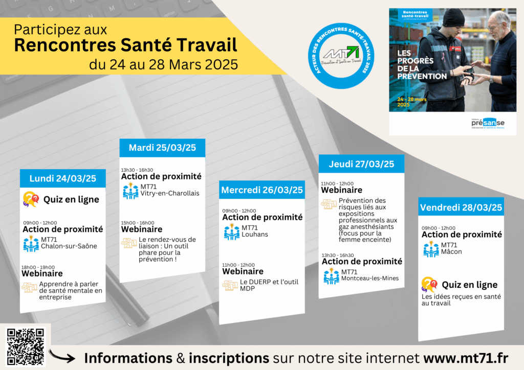 MT71 a organisé en mars 2025 les Rencontres Santé Travail pour ses entreprises adhérentes. Pendant une semaine, cinq rendez-vous ont rythmé le territoire de Saône-et-Loire :
